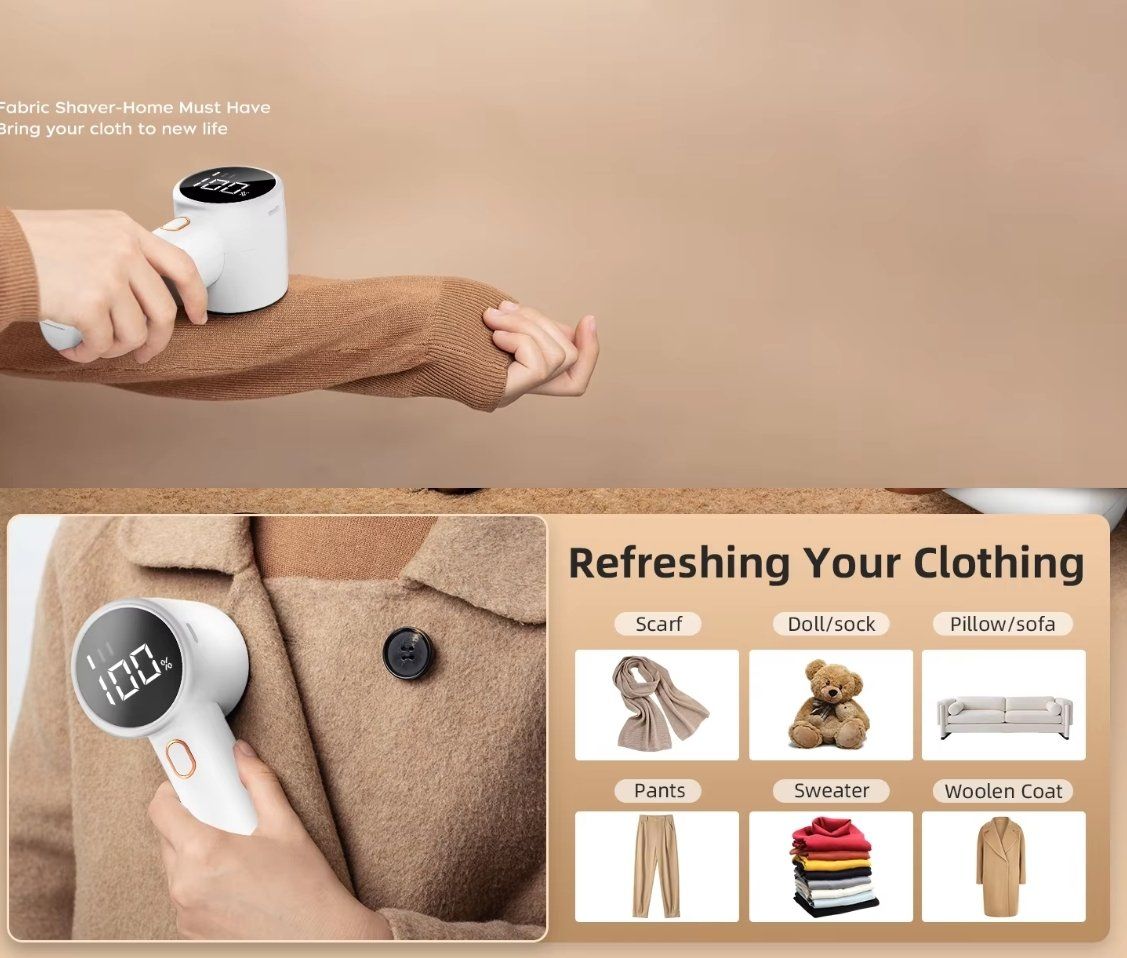Grâce à sa puissance, ses lames inox à 6 feuilles et son écran LED intelligent, il élimine rapidement les peluches, bouloches et fibres indésirables sur pulls, manteaux, canapés et textiles d’intérieur.