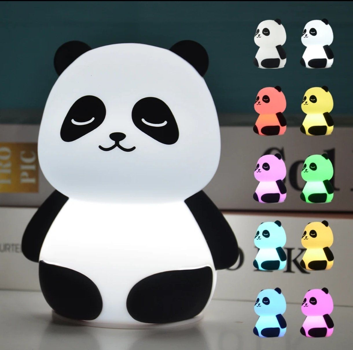 Adorable veilleuse panda pour accompagner les nuits des enfants. Douce lumière LED, rechargeable et contrôlable à distance pour un sommeil paisible.